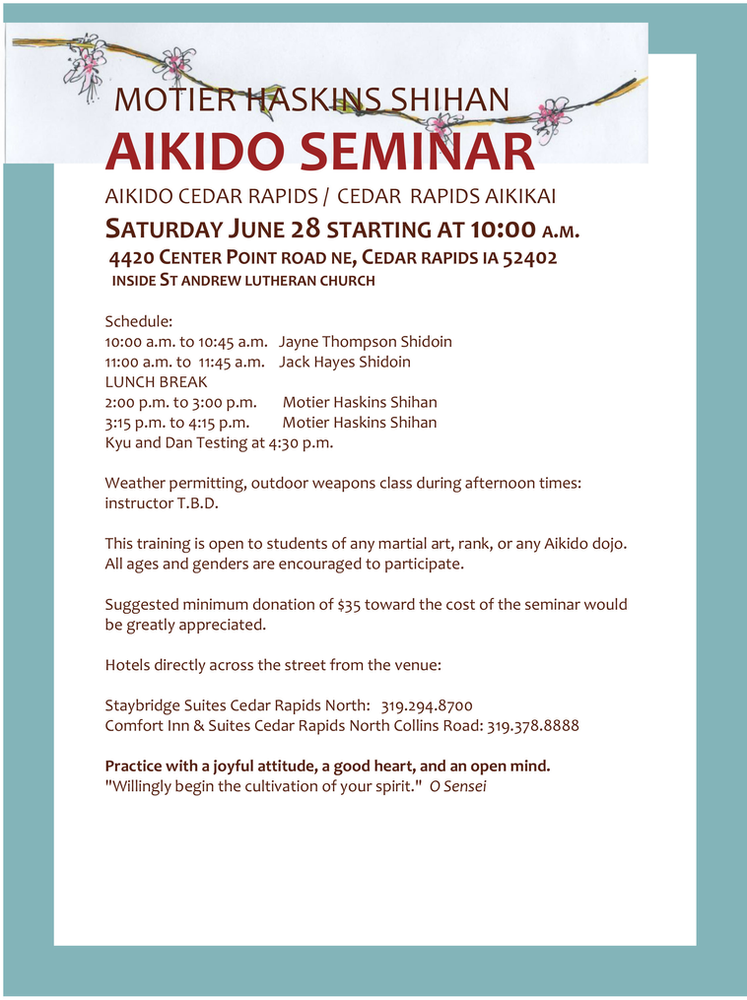 with Motier Haskins Shihan – Fairfield Iowa Aikikai, Jayne Thompson Shidoin – Aikido Cedar Rapids, and Jack Hayes Shidoin – Aikido Cedar…